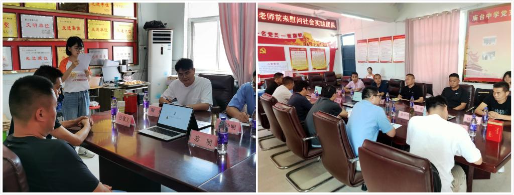 20日下午,汪俊武一行来到了阜阳市颍上县半岗镇庙台中学,慰问在此开展“筑梦路上,形颍相随”爱心支教团队全体志愿者并开展师生座谈会,半岗镇中心校副校长黄玉、庙台中学副校长沈道金、后勤处主任苏明、教务处主任任家义、学教务处副主任罗志共同参会。